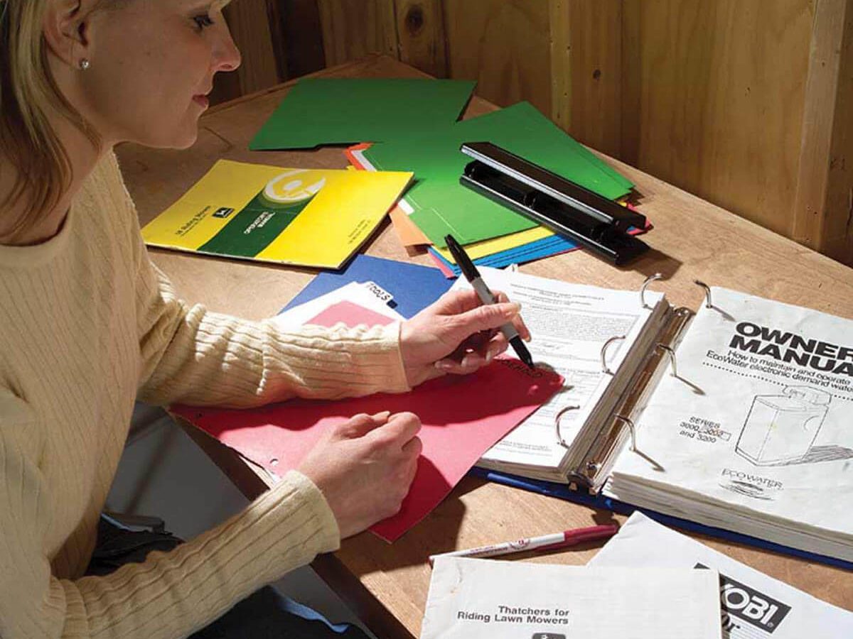 Store your appliance and tool manuals in three-ring binders so you can find them when you need them. Insert labeled dividers to organize them for quick reference instead of having them scattered in different places.