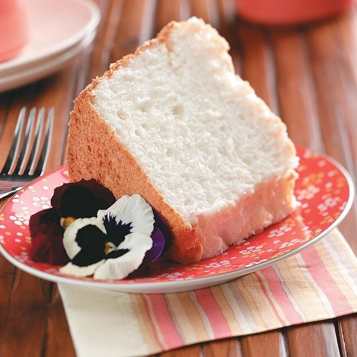 Angel food cake is everyone’s favorite blank slate for making awesome desserts. Serve it with a simple glaze or pile on fresh fruit, chocolate sauce or nutty sprinkles. —Leah Rekau, Milwaukee, Wisconsin