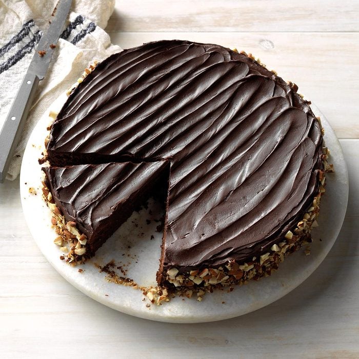 My husband and I are trying to eat lighter but still crave sweets. This moist, healthy chocolate cake really helps with that. With the rich frosting, it makes a decadent treat! —LaDonna Reed, Ponca City, Oklahoma