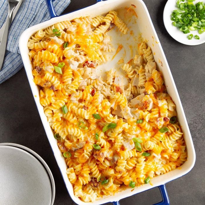 This chicken bacon ranch casserole is a dinner that both of my wonderful (but picky!) children will eat. I can easily make it ahead and then bake it right before serving. Sometimes I add 2 cups of cooked veggies, like peas or chopped broccoli, for a complete meal. —Rebekah Schultz, Mantua, New Jersey