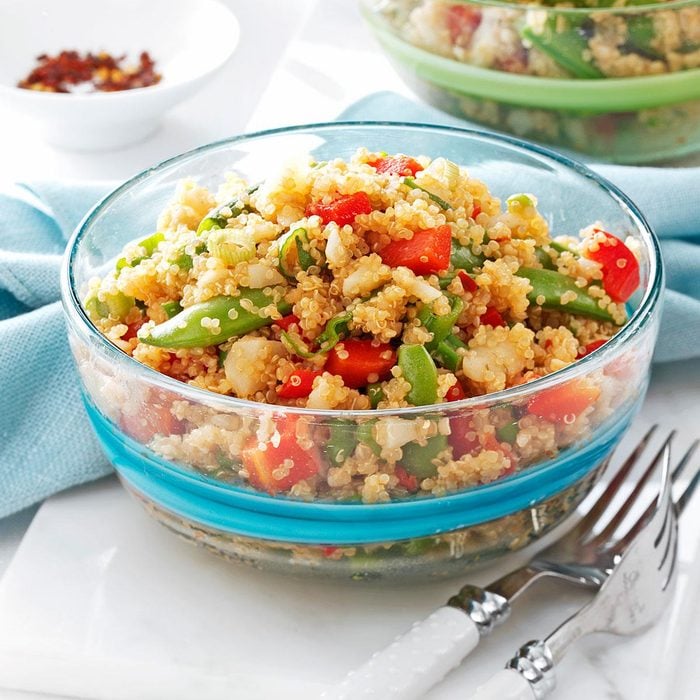 Toasting the grain before it simmers isn't essential, but it does add a pleasant nuttiness to the flavor of this vegan quinoa salad. Mix and match whatever fresh herbs and veggies you have on hand. —Taste of Home Test Kitchen, Milwaukee, Wisconsin
