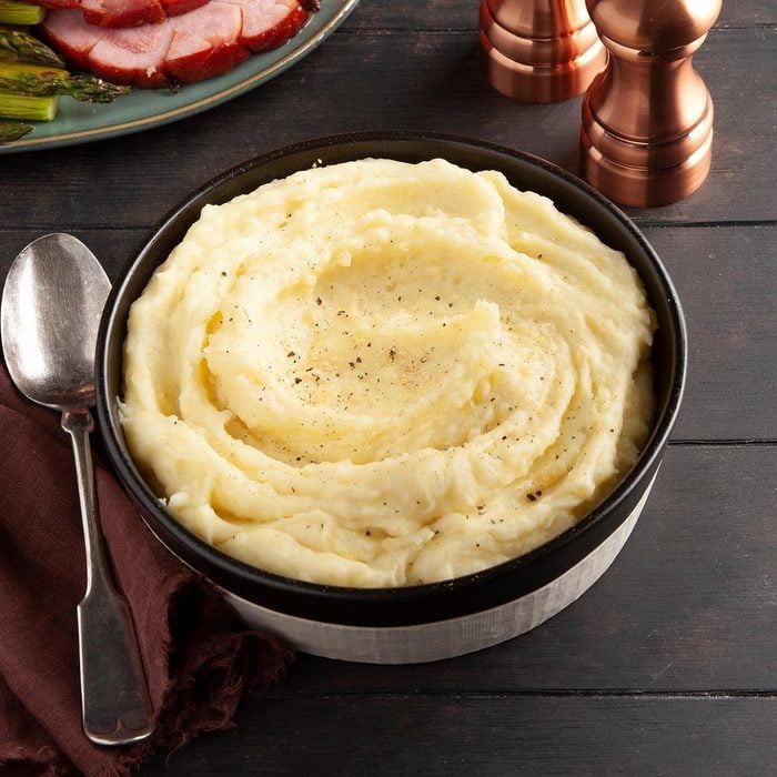 These creamy, buttery mashed potatoes use simple ingredients. The tricks are to use Yukon Gold potatoes and then to warm the cream and butter before adding them to the potatoes. —Rashanda Cobbins, Milwaukee, Wisconsin