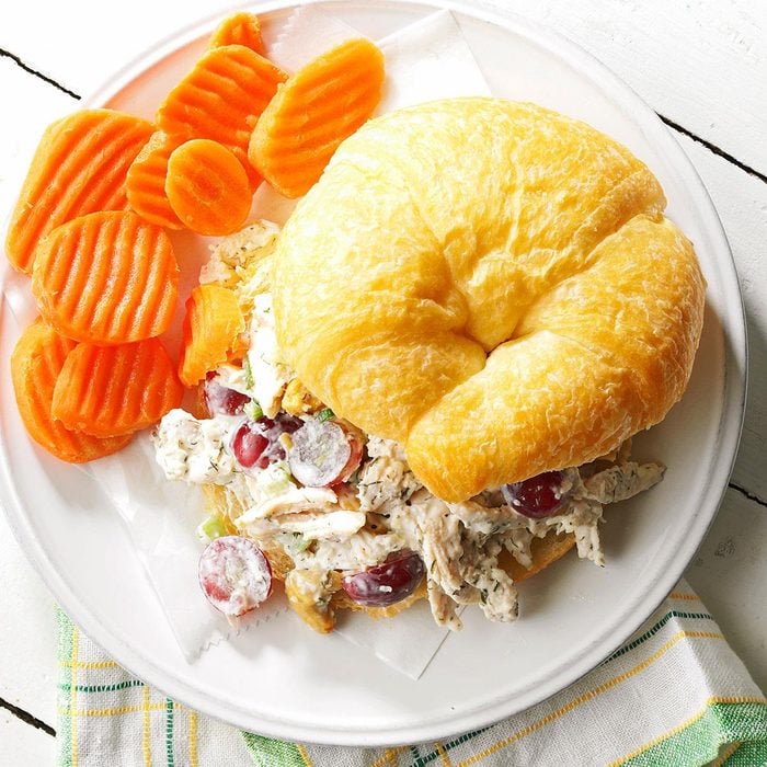 Parmesan cheese and dill make this the most incredible chicken salad I’ve ever tasted. These sandwiches are a simple entree to serve at parties, showers or picnics.—Jaclyn Bell, Logan, Utah
