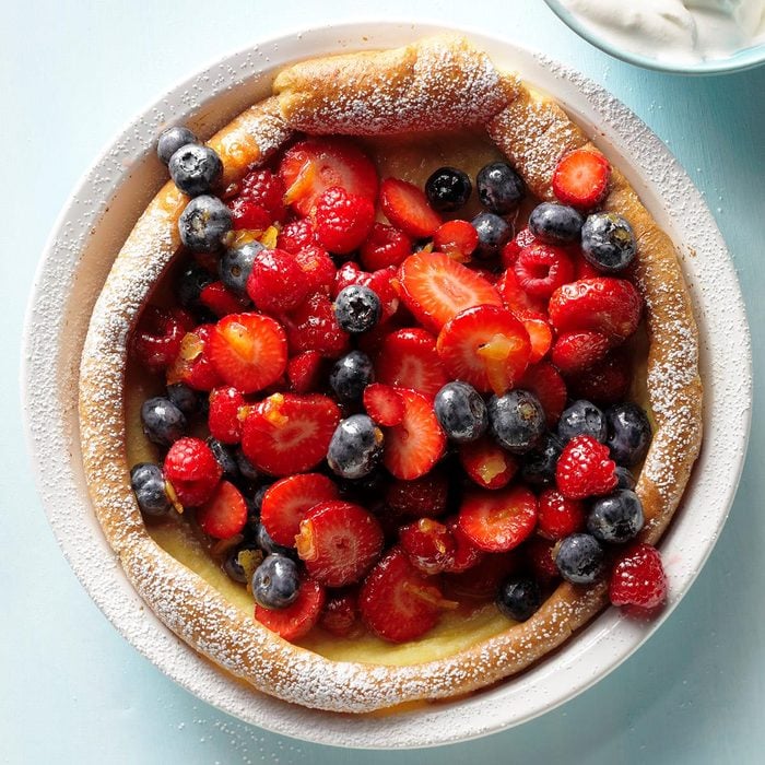 This slightly sweet berry puff pancake is filled with fruit and has a custardy texture that puffs up beautifully when baked. It makes an easy yet impressive breakfast. —Jessi Smith, Fort Myers, Florida