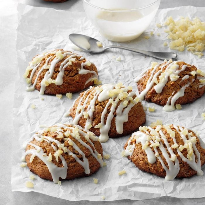 Gingerbread is a flavor that works with all sorts of delicious holiday baked goods. To glaze these ginger scones, just dip a fork or spoon into the glaze mixture and then drizzle over the tops. —Colleen Delawder, Herndon, Virginia