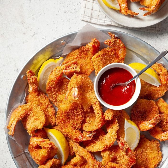 This refreshing, lightly seasoned, fried butterfly shrimp is easy to make and extremely versatile! Have it with a side of cocktail sauce, or serve it with steamed vegetables, rice or potatoes for a well-balanced meal. If you really want something special, place this tender, crispy shrimp on your favorite pasta! —Taste of Home Test Kitchen, Milwaukee, Wisconsin