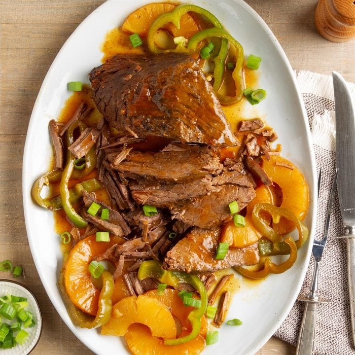 This marvelous Polynesian Beef from my sister has been a family favorite for years. Pineapple and peppers add a perfect contrast to the rich and savory beef. —Annette Mosbarger, Peyton, Colorado