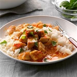1 cup (calculated without rice): 520 calories, 30g fat (14g saturated fat), 47mg cholesterol, 837mg sodium, 50g carbohydrate (36g sugars, 2g fiber), 16g protein.