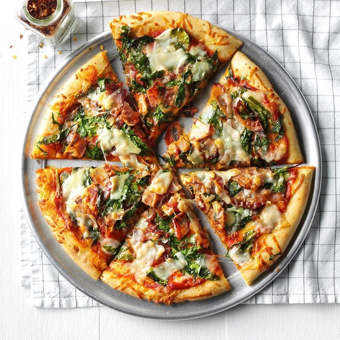 I love shortcuts, so I created this cast-iron pizza using the convenience of frozen bread dough. It's versatile, so pile on your family's favorite pizza toppings. — Carol Gillespie, Chambersburg, Pennsylvania