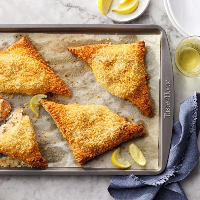Shrimp de Jonghe was invented in Chicago. It is usually baked and served in a casserole dish, but my shrimp puff pastry version is a handheld. The shrimp filling is perfect with crunchy pastry dough. —Arlene Erlbach, Morton Grove, Illinois