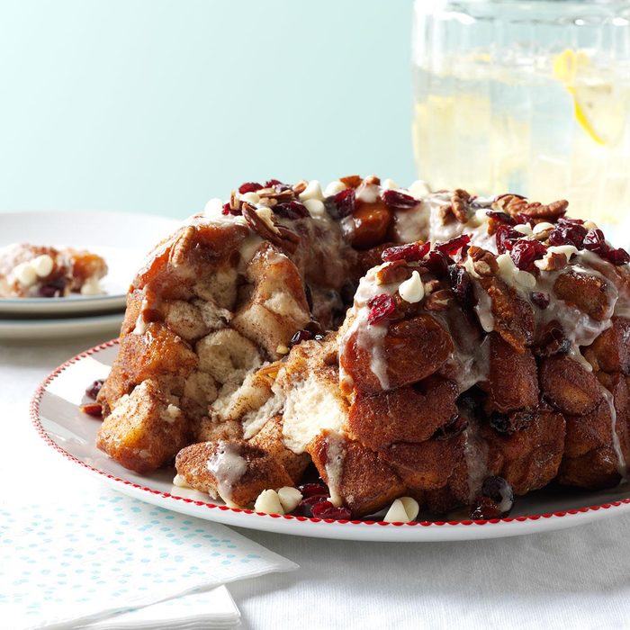Monkey bread is no stranger at our house, but I wanted a holiday version. This one with cranberries and eggnog is a breakfast treat or knockout dessert. —Katherine Wollgast, Florissant, MO