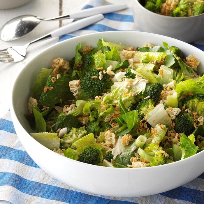 With added crunch from ramen noodles and sunflower seeds, plus a sweet, glossy dressing, this lively salad is a definite crowd-pleaser! —Beverly Sprague, Baltimore, Maryland