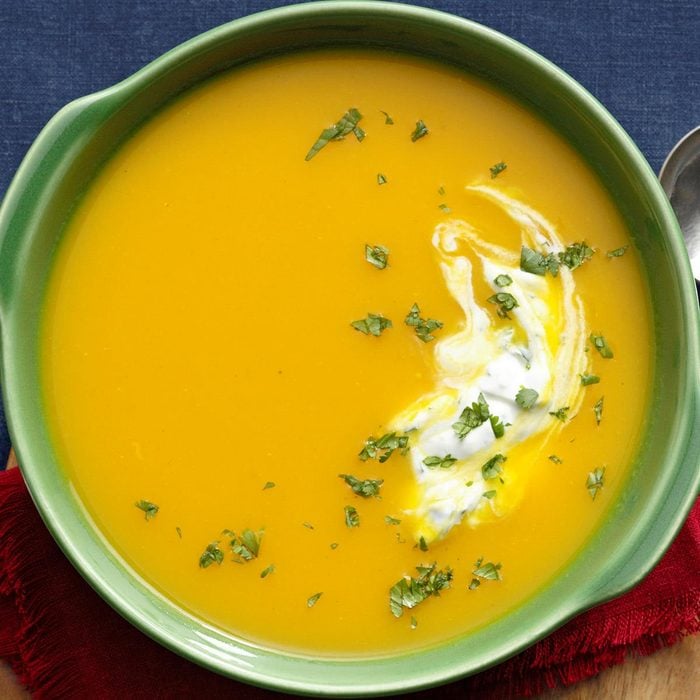 When I'm in need of comfort food, I stir up a velvety batch of this Asian-spiced soup. Then I finish it with a sprinkle of cilantro over the top. —Elizabeth DeHart, West Jordan, Utah