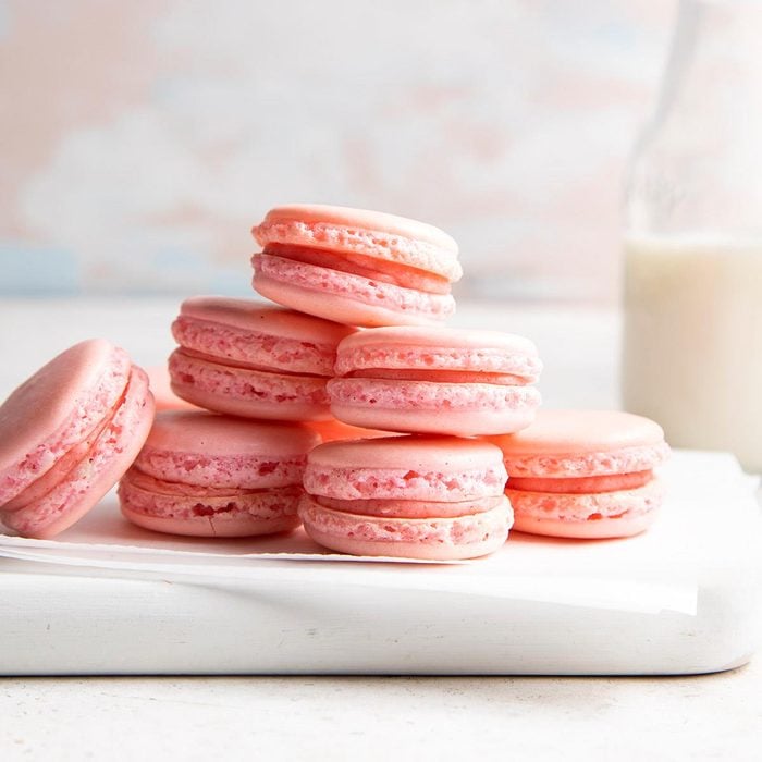 These strawberry macarons have a sweet surprise in the filling: strawberry jam. To keep the jam contained, pipe the frosting around the outer edge before adding the jam in the center. —Josh Rink, Milwaukee, Wisconsin