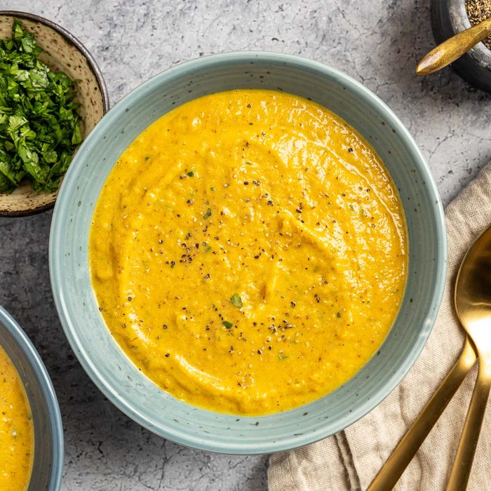 The easiest spring soups on this list are our tortellini soup, carrot ginger soup, lima bean soup, DIY ramen soup, lemony chicken noodle soup, Greek tomato soup with orzo, creamy sweet potato and veggie soup, creamy vegetable turkey soup, cream of cauliflower soup and tortellini primavera soup. These 10 soups take under 45 minutes to make and are one-pot wonders!