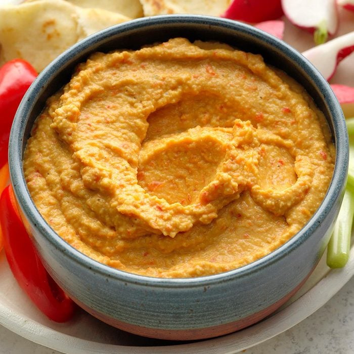 My son taught me how to make hummus, which is a tasty and healthy alternative to calorie-filled dips. Fresh roasted red bell peppers make it special. —Nancy Watson-Pistole, Shawnee, Kansas