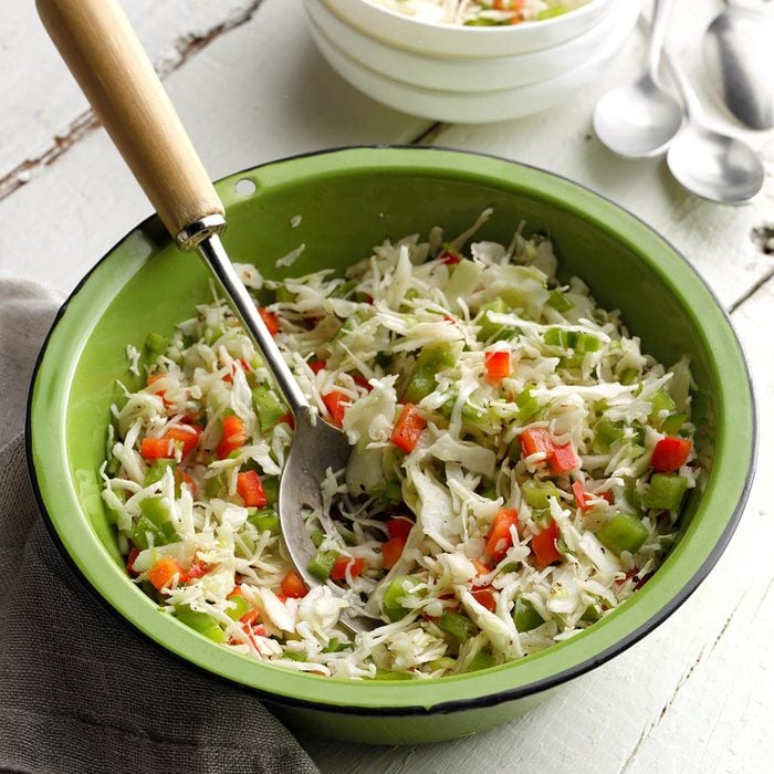 Crispy and crunchy, this old family slaw recipe makes a refreshing side dish for picnics and parties. —Kimberly Wallace, Dennison, Ohio