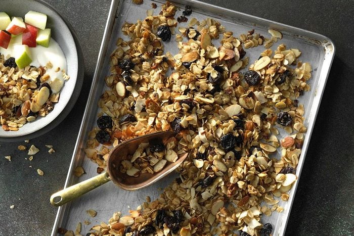 Whether you snack on it by the handful or eat it with milk or yogurt, you’ll be happy that you found this granola recipe. —Rachel Preus, Marshall, Michigan