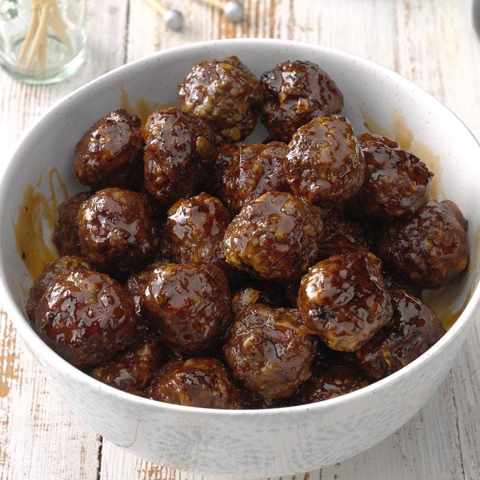 I am always on a quest for meatballs that pack a sweet and savory punch. These air-fryer meatballs are a snap to pull together and can be served over rice or buttered noodles.—Tami Kuehl, Loup City, Nebraska