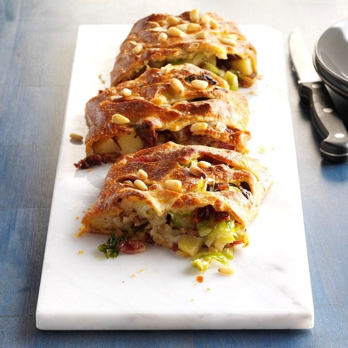 Roasted Brussels sprouts and potatoes go so well with bacon and Brie in my shortcut strudel. I leave potato skins on for extra flavor and texture. —Carole Holt, Mendota Heights, Minnesota
