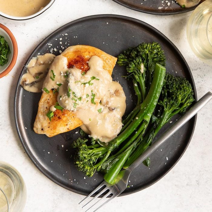 A fairly simple chicken becomes a savory masterpiece thanks to the addition of a creamy mushroom sauce. Prep is quick and leftovers can be stored in the refrigerator for up to 4 days.