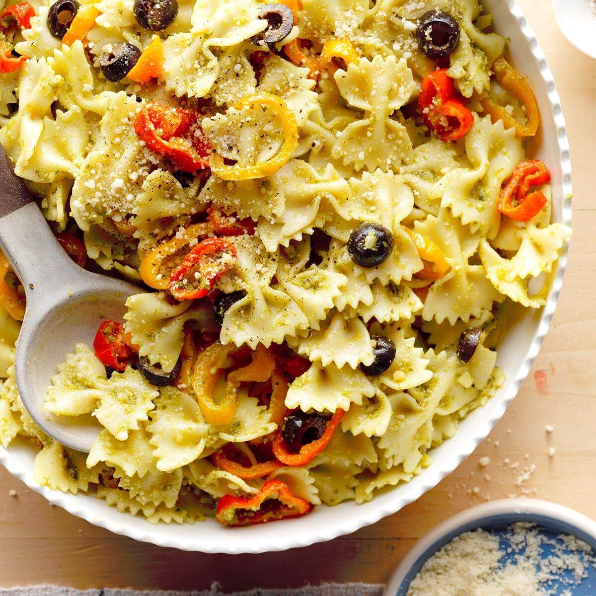 Translated as “quills” or “feathers,” penne noodles are also tubular and ridged similarly to rigatoni. Those two features help sauces cling to the noodles. Use penne for any dish where you want the sauce to be the star, like penne alla vodka. Learn how to make pesto penne pasta for another satisfying dish.