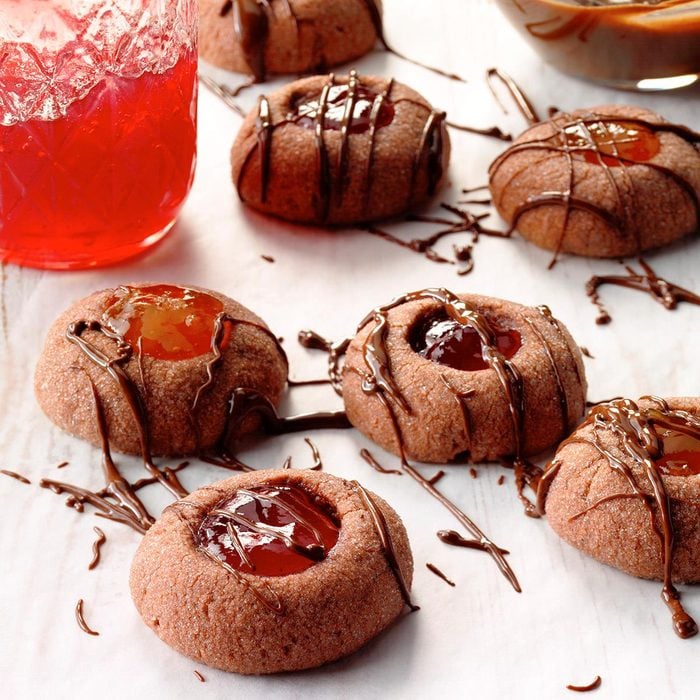 My group of friends had a weekly "movie night" during winters on Martha's Vineyard, and we'd take turns making a chocolate treat to share. These terrific chocolate thumbprint cookies were an instant success. Once they debuted, I had to make them many more times. —Laura Bryant German, W. Warren, Massachusetts