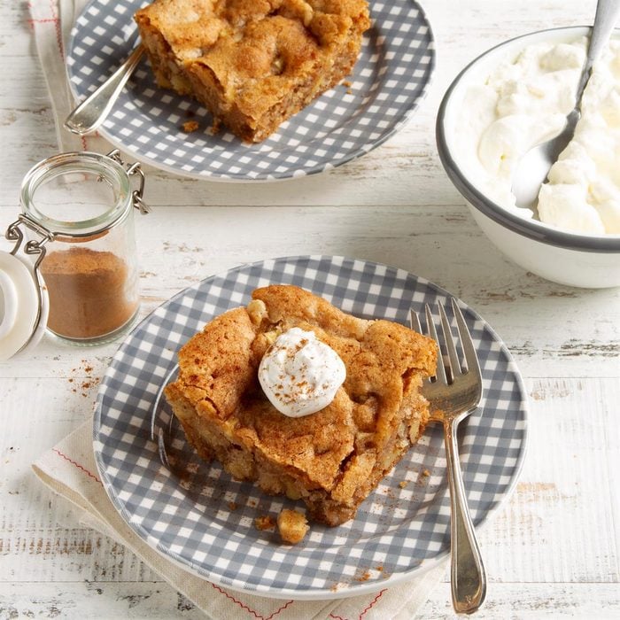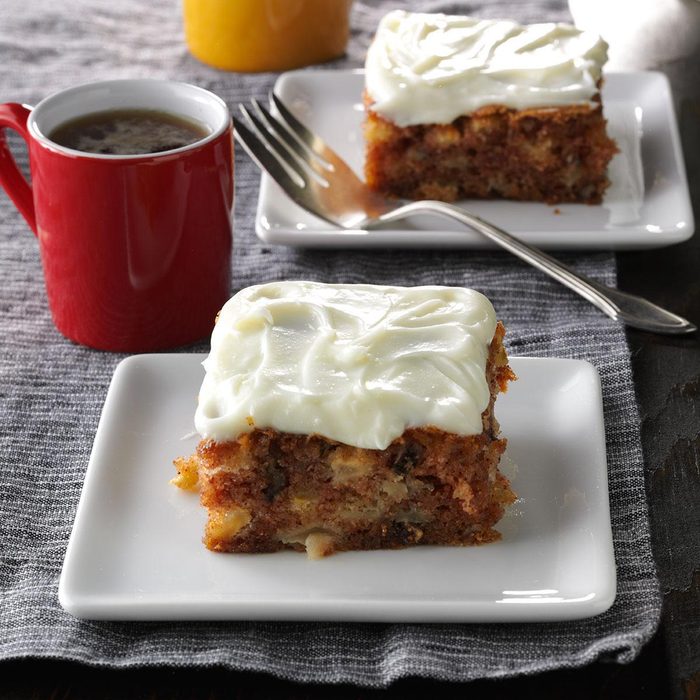 After testing many apple cake recipes with fresh apples, this old-fashioned cake is moist, dense and down-home delicious. Even better, it’s quick to fix and, served warm with whipped cream or a dollop of frozen custard, one of my family’s very favorite recipes for decades. —Sherry Ashenfelter, Waterville, Ohio