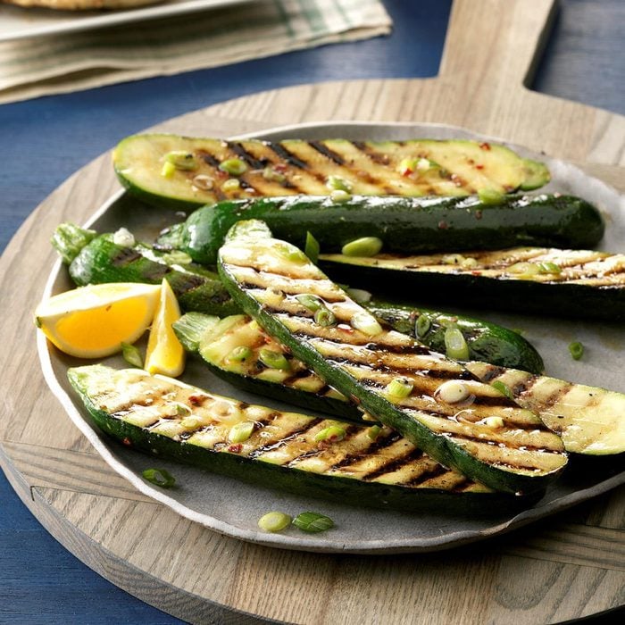 Wondering what to do with all of your garden-grown zucchini in the summer? Give it a sizzle and a little heat with this healthy side. It’s also an easy recipe to double or triple for summer cookouts. —Alia Shuttleworth, Auburn, California. Check out these vegetarian grilling recipes to try this summer.
