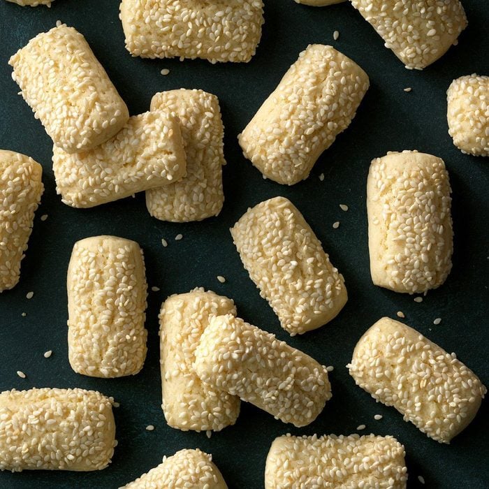 These nontraditional European cookies aren’t overly sweet and have a wonderful crunch from sesame seeds. They’re the ideal accompaniment to a freshly brewed cup of coffee or tea.—Sarah Knoblock, Hyde Park, Indiana