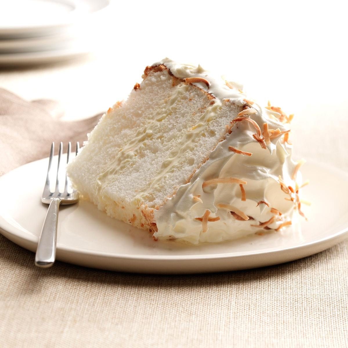 Feeling like a coconut cream pie and have an angel food cake at the ready? You can whip up the easy coconut cream pie filling from this recipe, and top your angel food cake with it, plus some toasted coconut.