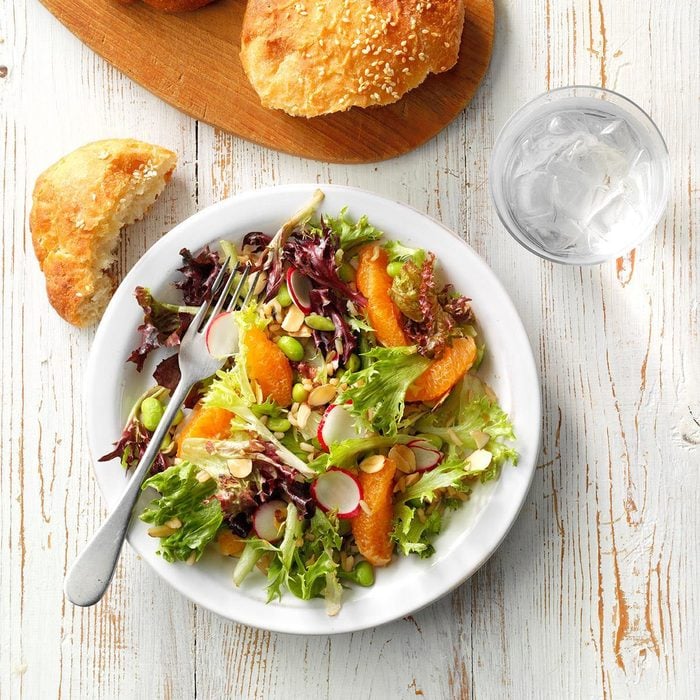 You can make filling vegetarian salads with meat substitutes like tofu or tempeh, but the right blend of hearty grains, fiber-rich legumes and healthy fats like nuts and avocado can make salads just as filling as any meat-topped salad. Try chickpeas, lentils or hearty veggies like winter squash, sweet potatoes, broccoli or Brussels sprouts. When grilled, sturdy cheeses like halloumi can be just as show-stopping as a steak. And don’t even get us started on creamy burrata cheese, which makes a decadent (and filling) salad topper.