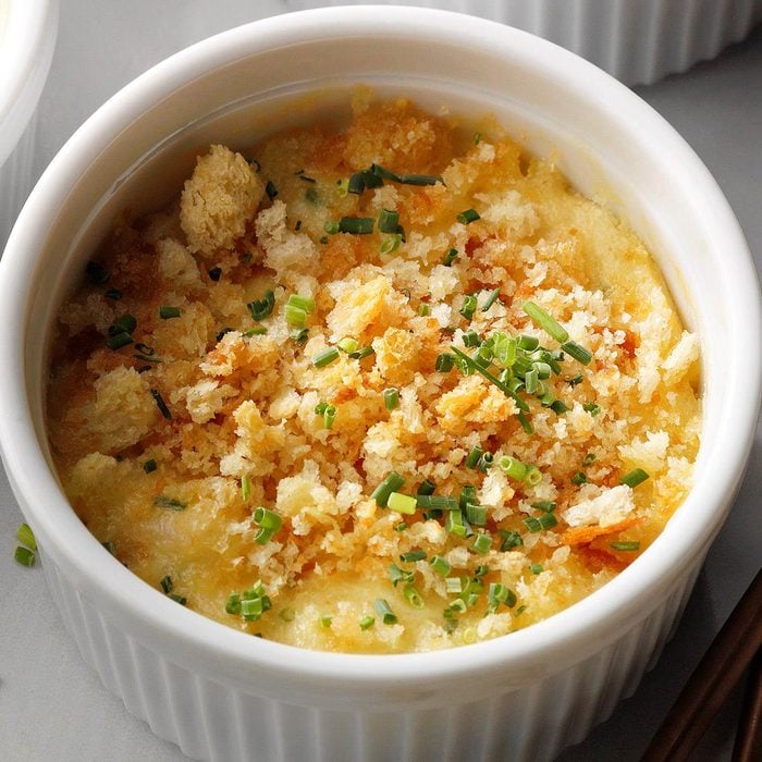 Dip your spoon into this super rich deviled crab, and you might think you’re in heaven. Generous portions of crab are mixed with cream and eggs and are flavored with chives, onions and more. Mmm! —Doris Prillaman, Wilmington, North Carolina