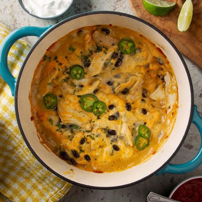 Twice a month I make chicken enchiladas, lasagna-style. It’s a regular with us because assembly is easy and my whole family gives it a thumbs-up. —Cheryl Snavely, Hagerstown, Maryland