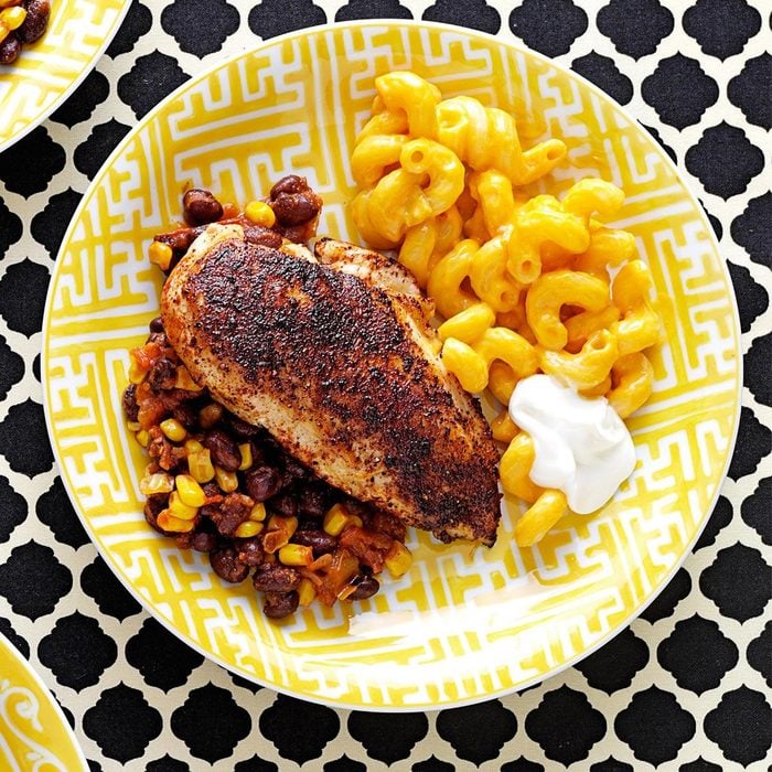 My husband loves any spicy food, and this is one quick-fix recipe we can both agree on. As the chicken cooks, whip up salads of lettuce, tomato, avocado and shredded cheddar cheese. Dinner's done! —Christine Zongker, Spring Hill, Kansas