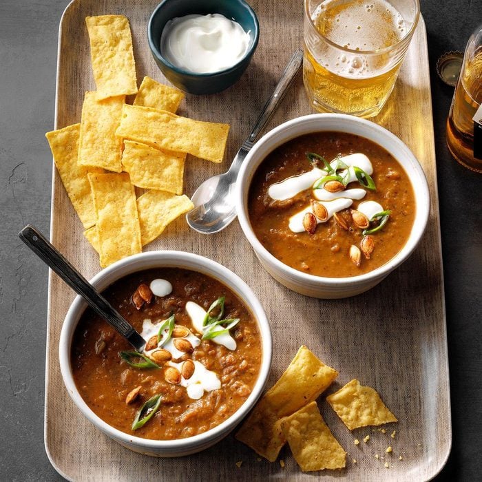 This is a healthy and filling meal that even the kids love! The satisfying chili is great for football games or potluck dinners. —Katti Scott, Manteo, North Carolina