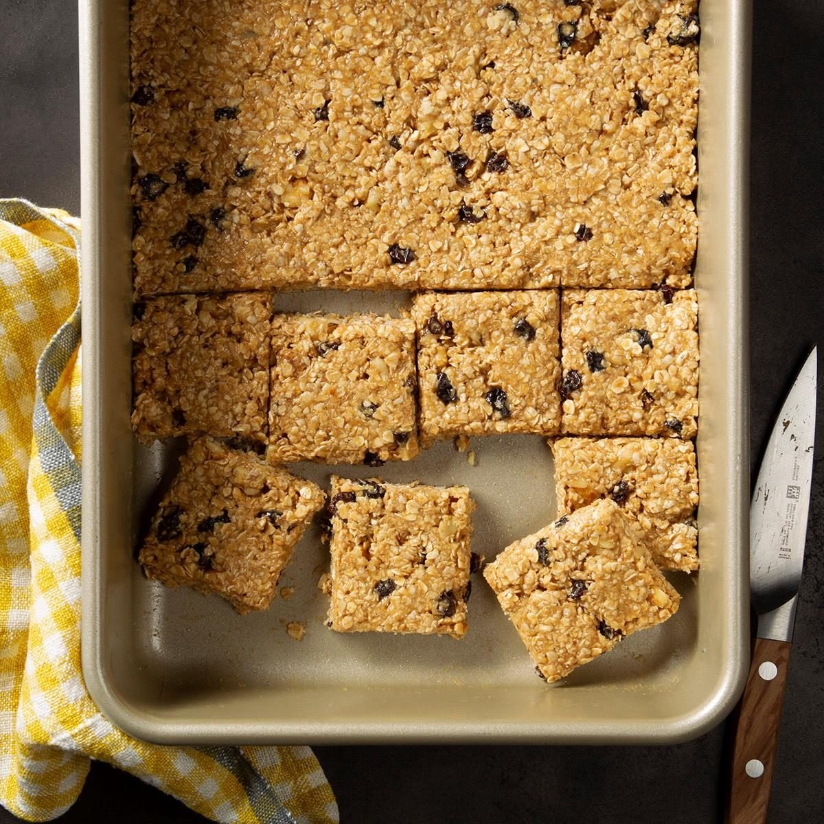 These sweet peanut butter bars are perfect for breakfast, dessert or anytime as a quick snack. You can add raisins...