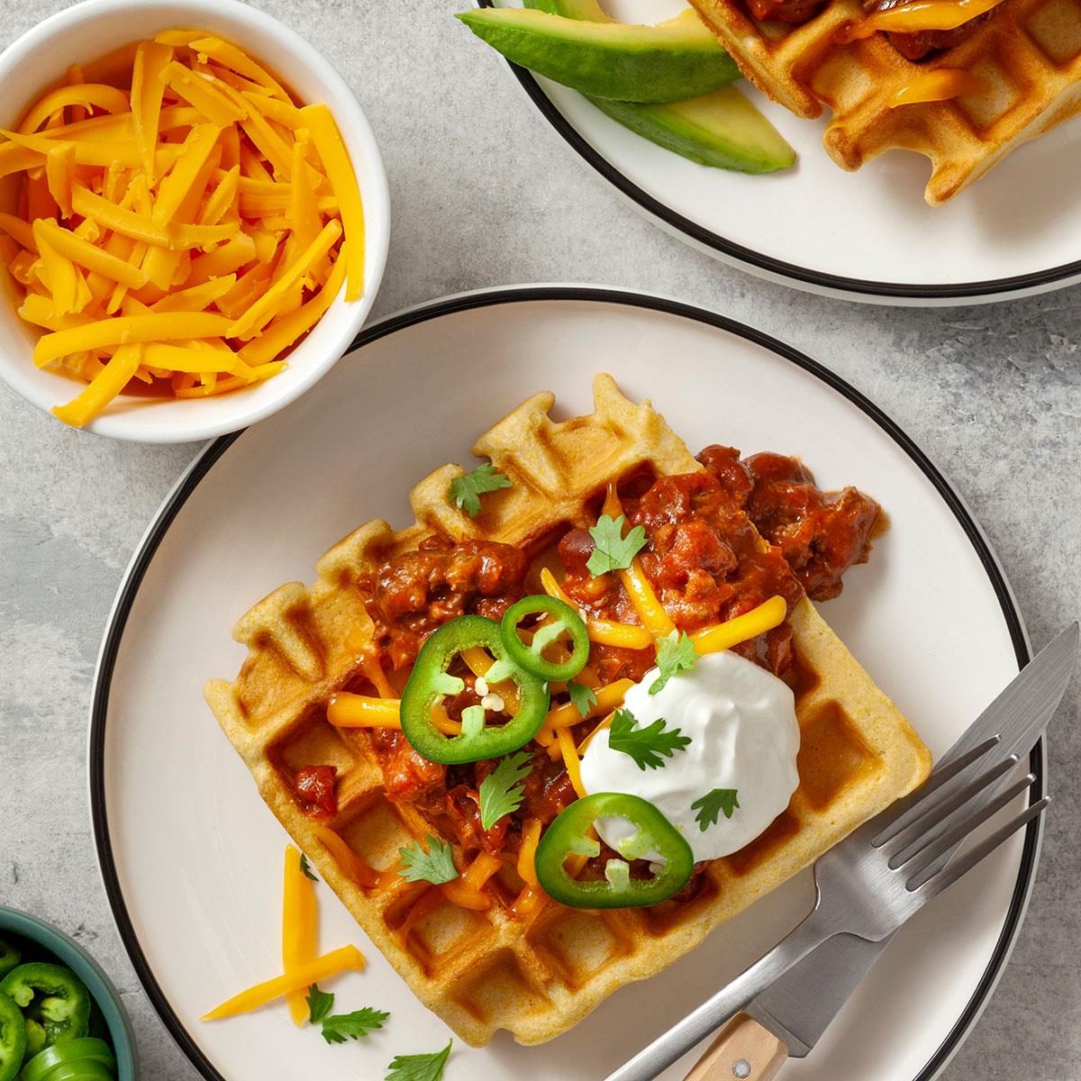 This cornbread waffles recipe puts a new spin on the classic cozy meal of homemade chili with a side of...