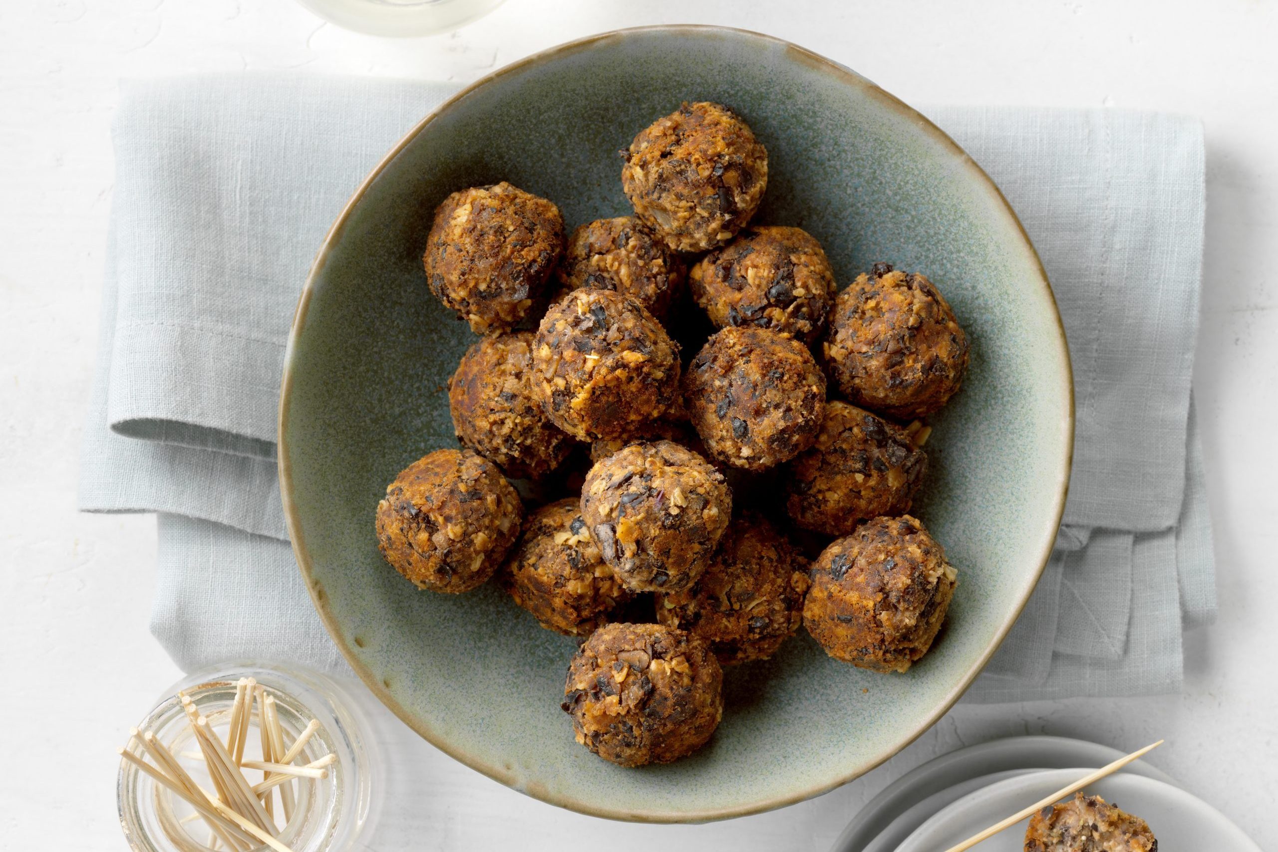Serve these hearty vegan meatballs with spaghetti and marinara sauce for a quick, healthy dinner.