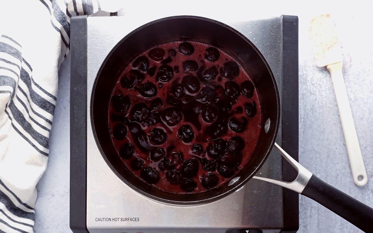 - Meanwhile, in a large saucepan, bring cherries, 2/3 cup water and sugar to a boil over medium heat. Reduce heat; cover and simmer for 5 minutes or until heated through. Combine cornstarch and remaining water until smooth; stir into cherry mixture. Bring to a boil; cook and stir for 2 minutes or until thickened. Serve with blintzes.
