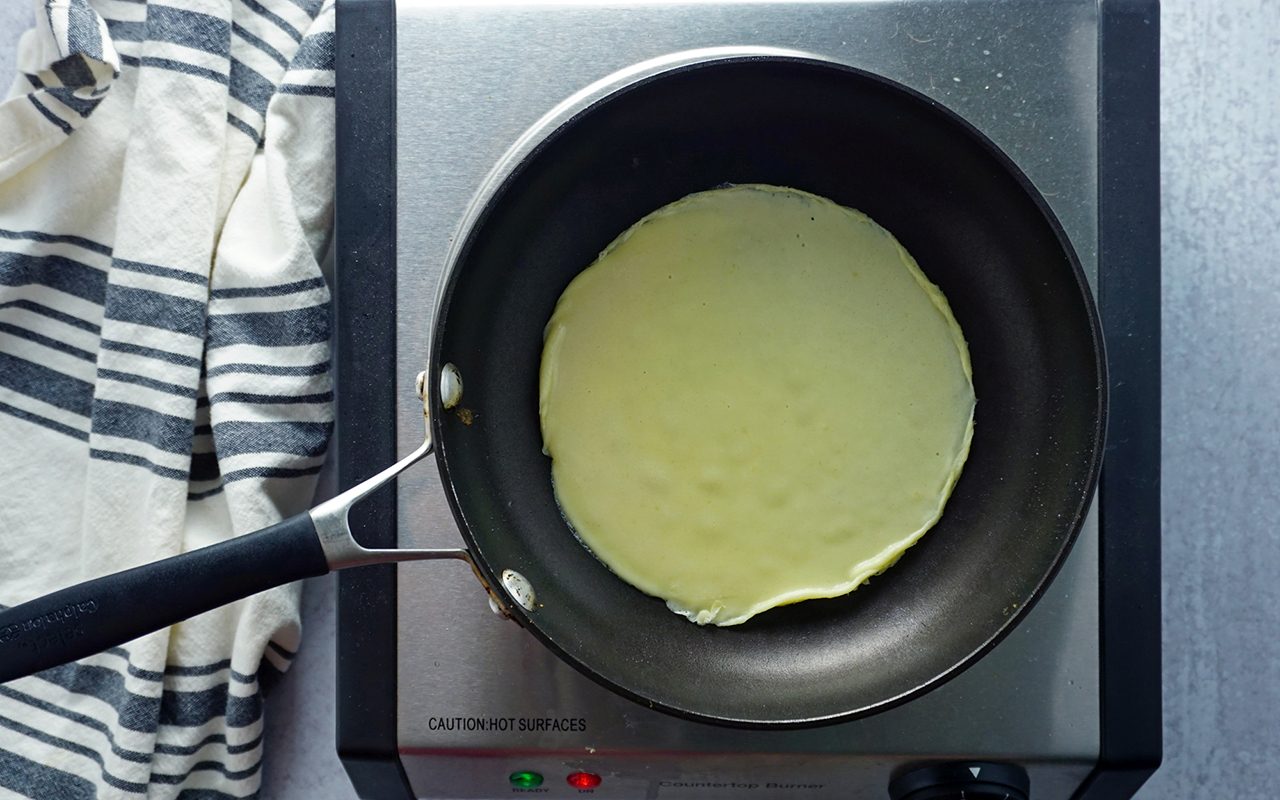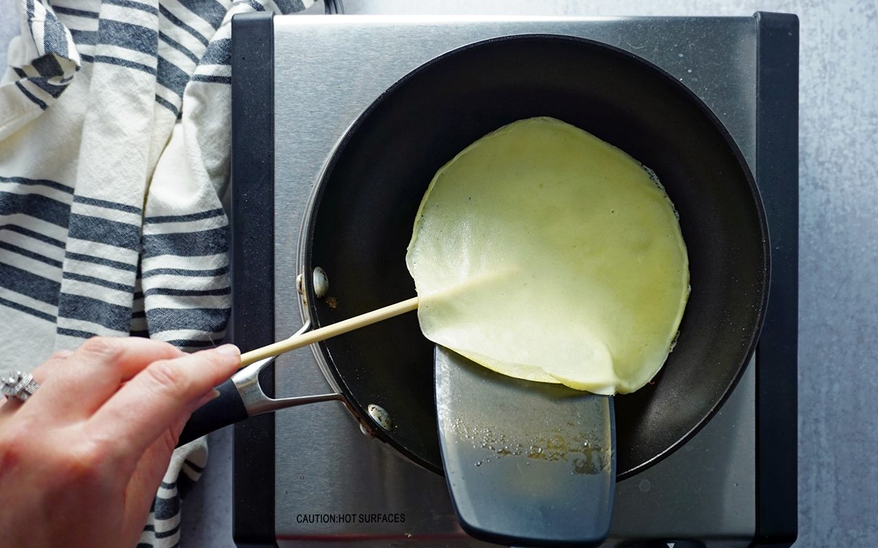 Editor’s Tip: In testing, we found that a single wooden or plastic chopstick works best to help lift and pull the blintz onto the spatula before flipping. It helps prevent tearing and get enough blintz onto the spatula for an easy flip every time.