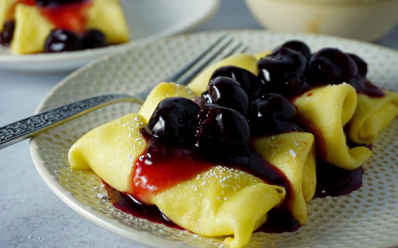 Pancakes, crepes and waffles get a lot of love. However, if you’ve never had (or heard of) a blintz before, it’s the Jewish cousin of the French crepe. Our sweet cherry-studded version makes a decadent and unexpected breakfast.