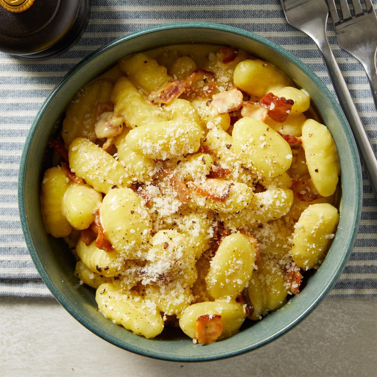 Gnocchi carbonara is a twist on the classic Italian dish, featuring tender gnocchi tossed in a silky Parmesan and egg...