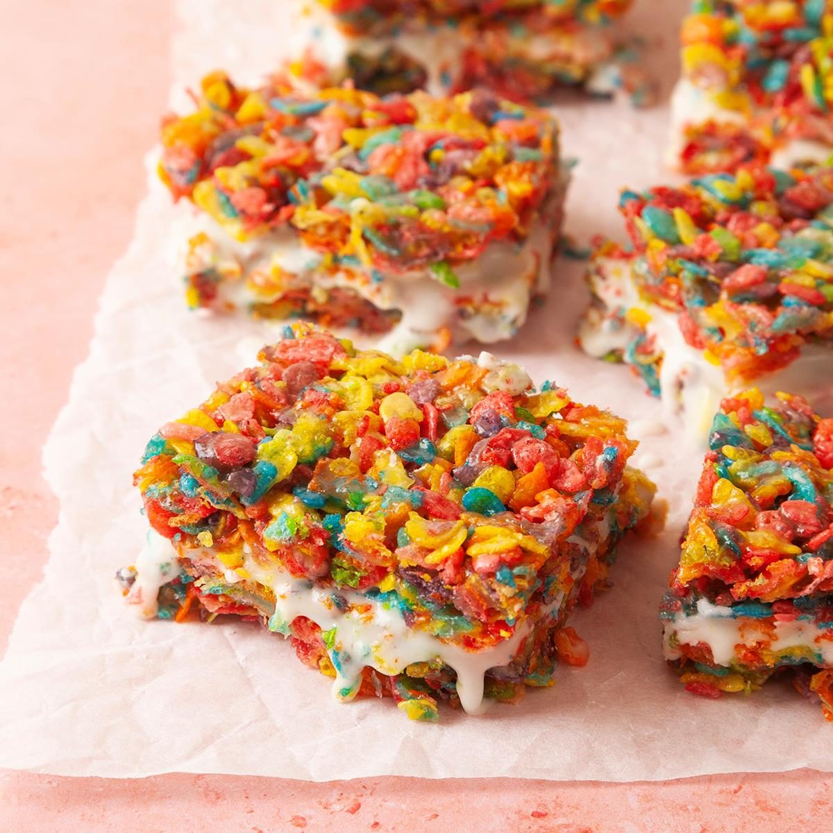 Take a sweet trip down memory lane with homemade Fruity Pebbles milk 'n' cereal bars.