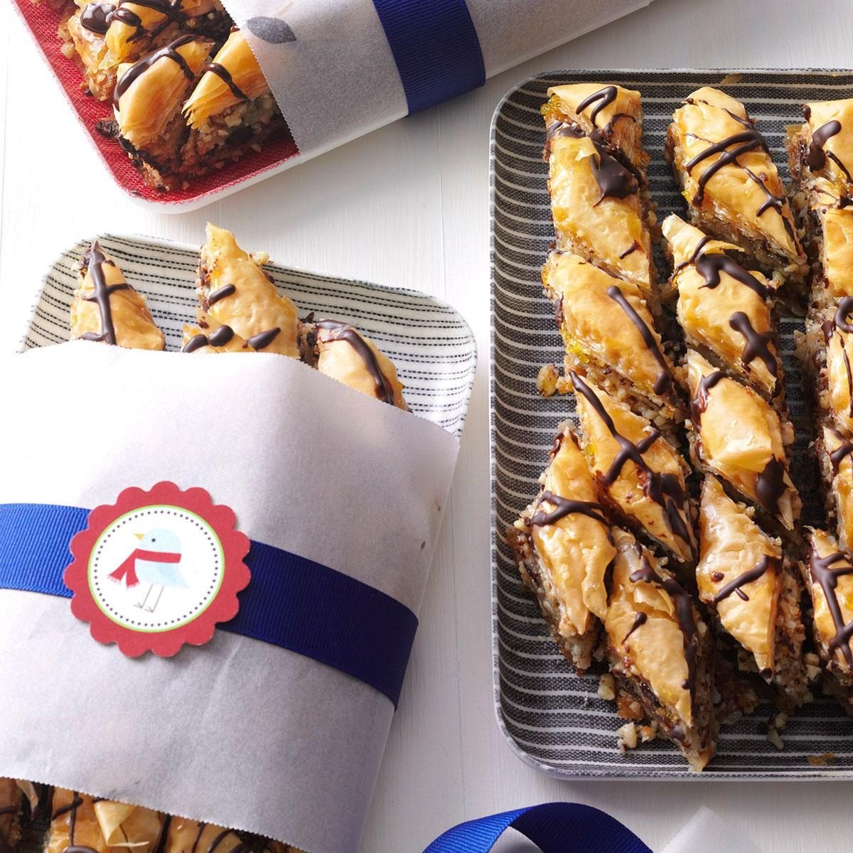 A twist on classic baklava, this recipe adds semisweet chocolate to the nut filling and drizzles even more chocolate on...