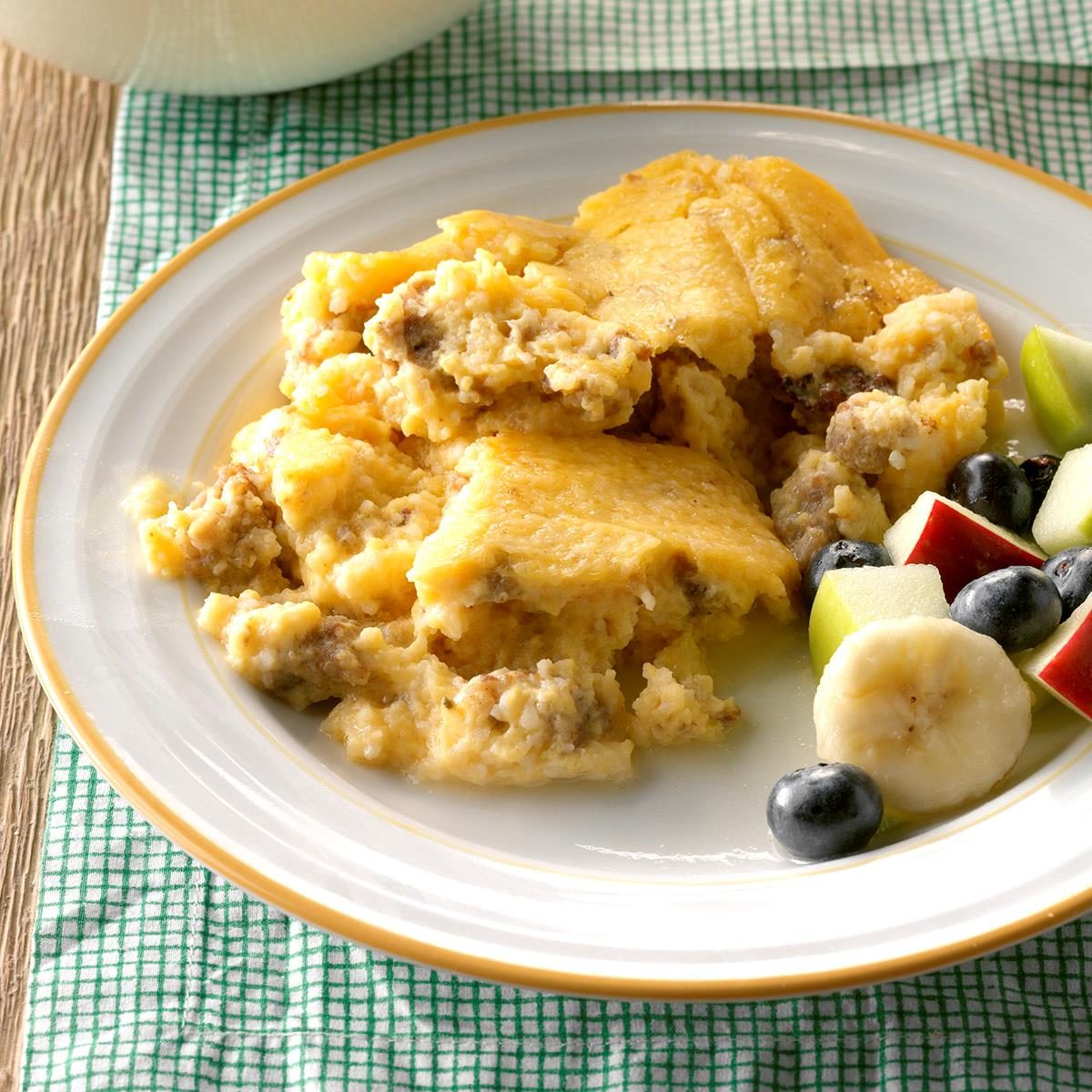 I fix this breakfast cake for my co-workers often. The blueberries and sausage are such a nice sweet-salty flavor combo....