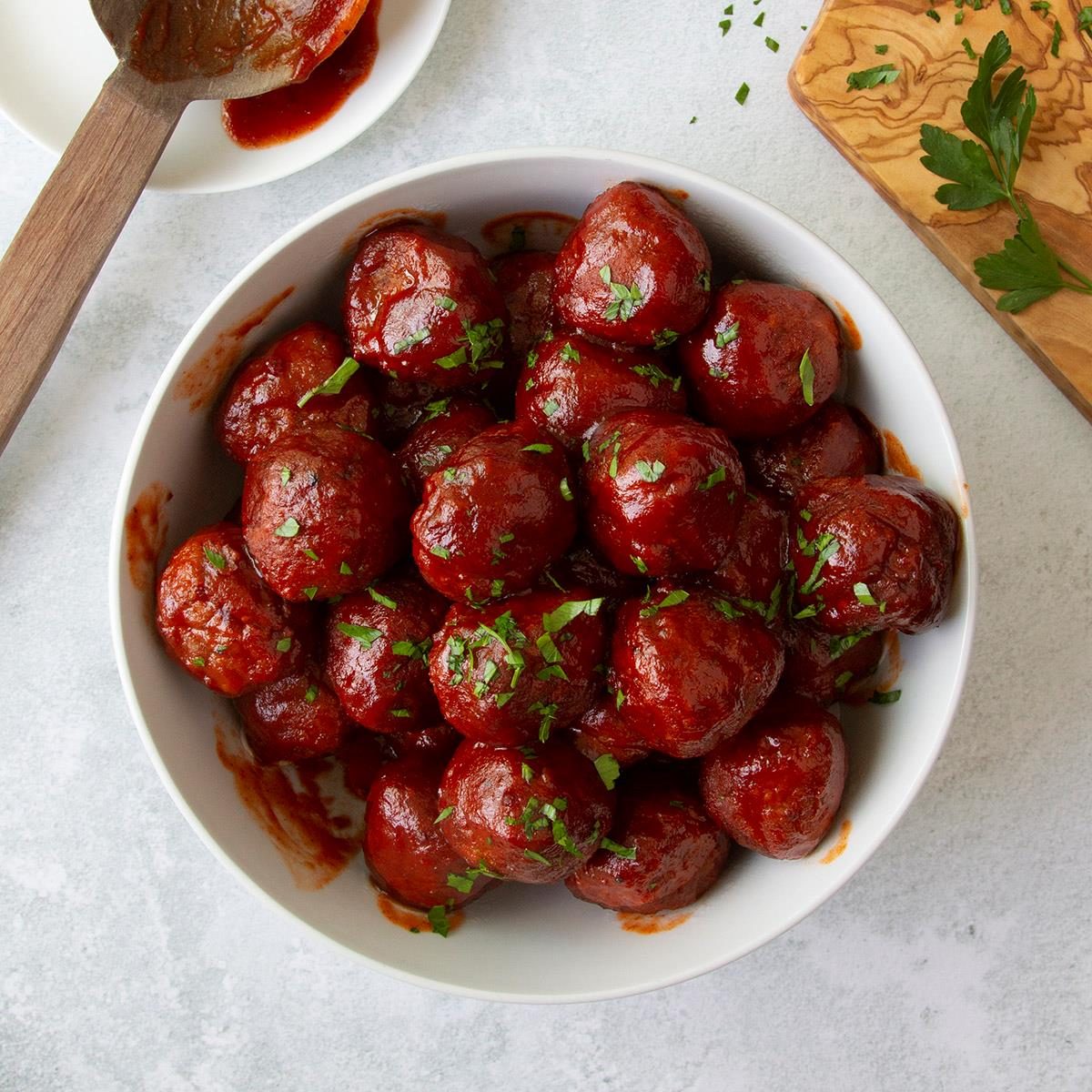 This simple meatball recipe relies on timesaving ingredients like frozen meatballs and barbecue sauce. It's the perfect last-minute appetizer! —Taste...