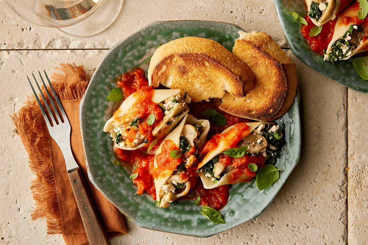 The secret to creamy vegan stuffed shells? Crumbled tofu!