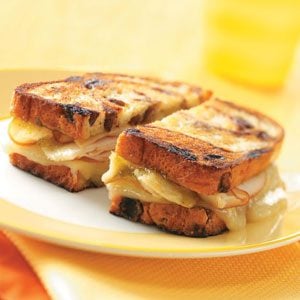 Toasty and tasty, these hefty sandwiches boast a touch of sweetness from the raisins and jalapeno jelly. The creamy Havarti...