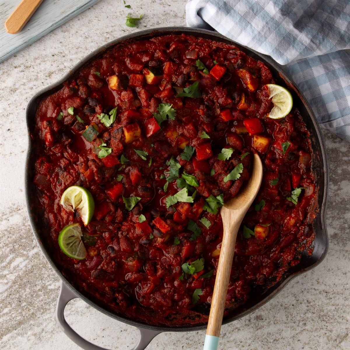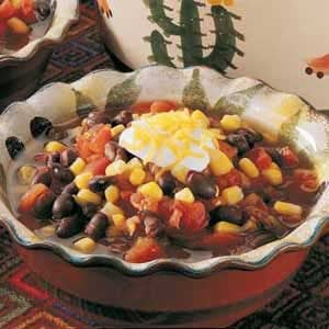 For a quick satisfying meal, ladle up big bowlfuls of this vegetarian chili. Fresh cornbread is a delicious accompaniment. —Pat...